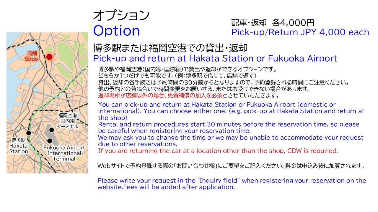 Collision damage waiver (CDW) JPY 3,000/Per 24 hours |