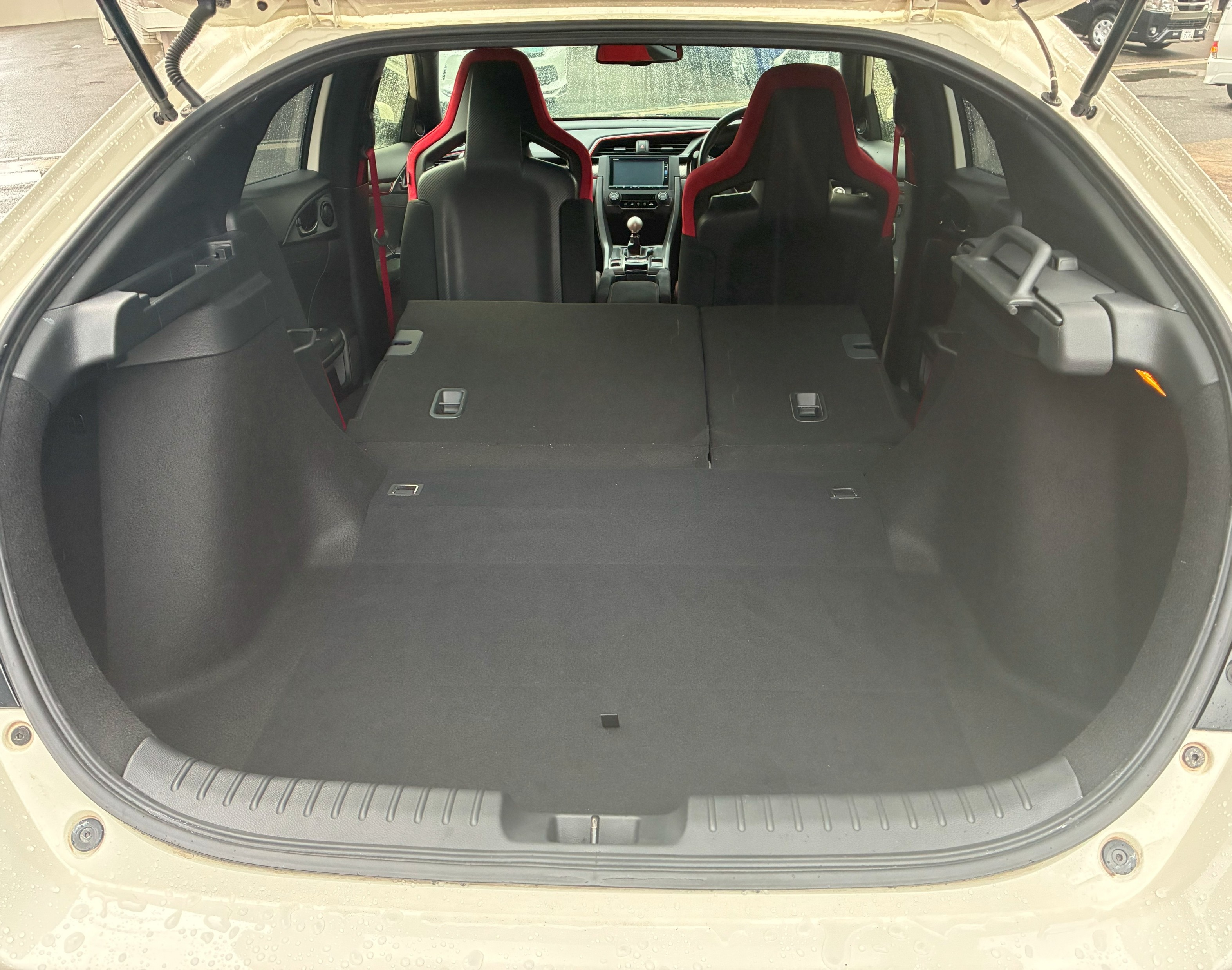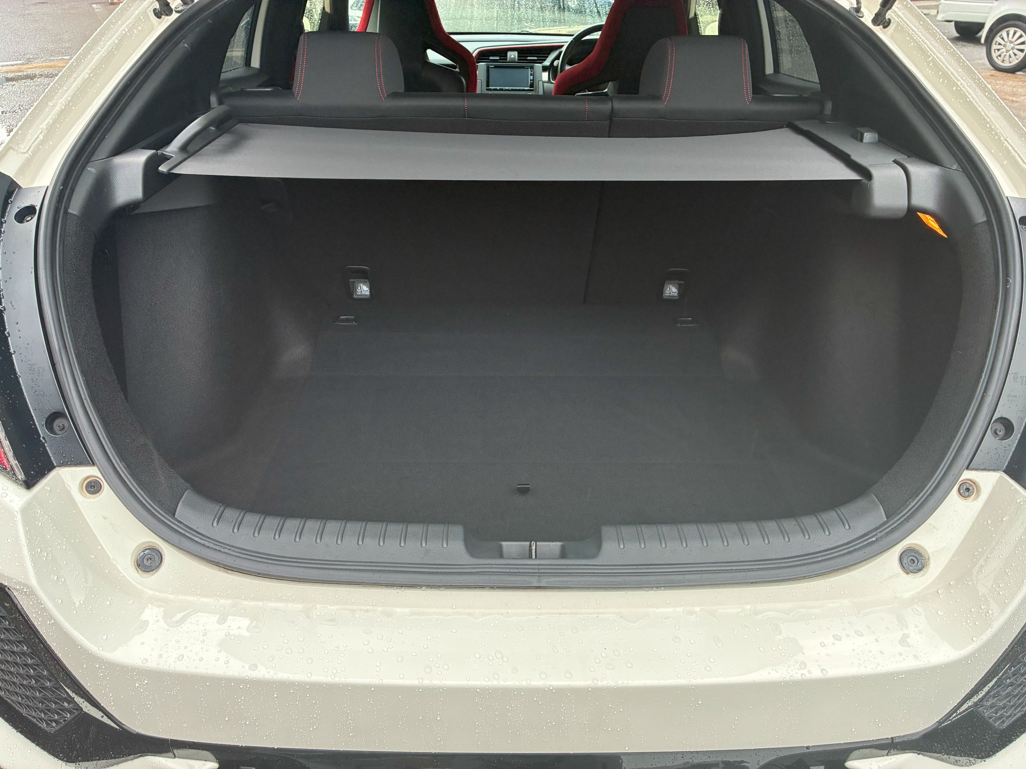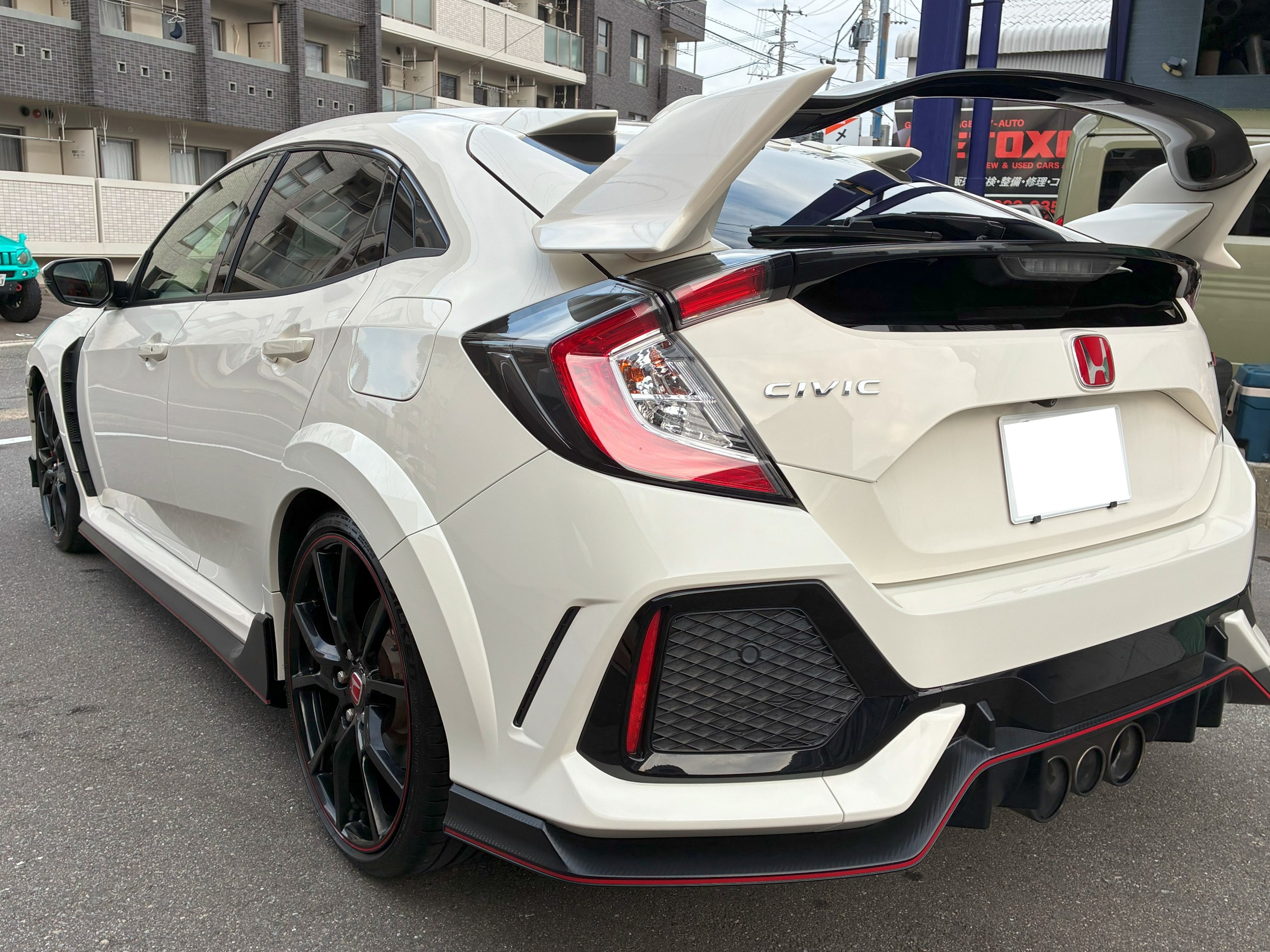 This is the HONDA CIVIC TYPE R FK8, a five-door hatchback sports car with four seats and a distinctive rear wing (1 generation older as of 2025).