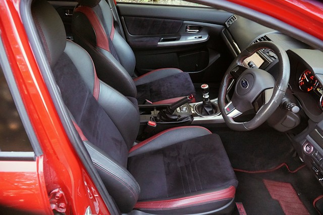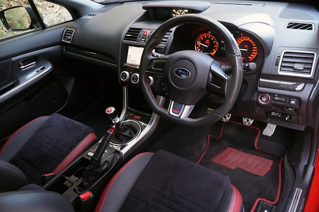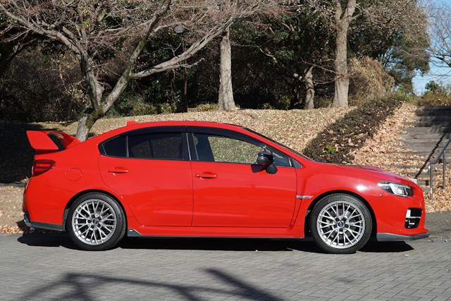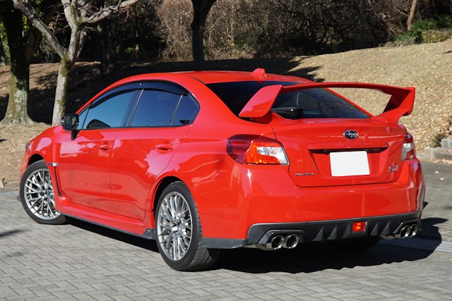 スバルが誇るフラッグシップスポーツセダンWRX STIの上級グレードType-S(BBS製18インチアルミホイール、ビルシュタイン製ダンパー、大型リアスポイラー等装備)になります。