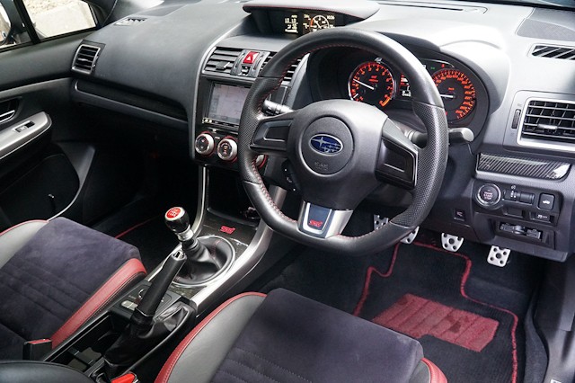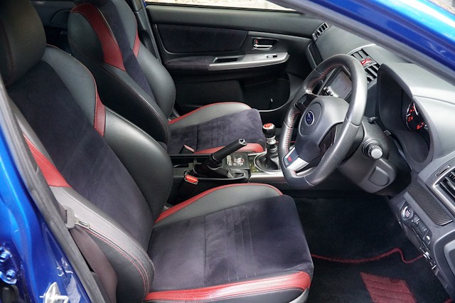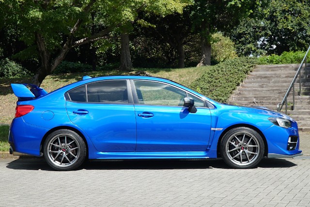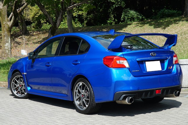 スバルが誇るフラッグシップスポーツセダンWRX STIの上級グレードType-S(BBS製18インチアルミホイール、ビルシュタイン製ダンパー、大型リアスポイラー等装備)になります。